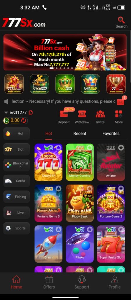 777 sx Game online is an online gaming platform that features a mix of casino, slots, fish-shooting, and arcade-style games designed for players who enjoy interactive and reward-based gameplay. Built with mobile-friendly interfaces and real-time gaming mechanics, the platform allows players to compete, win bonuses, and enjoy fast-paced entertainment.
