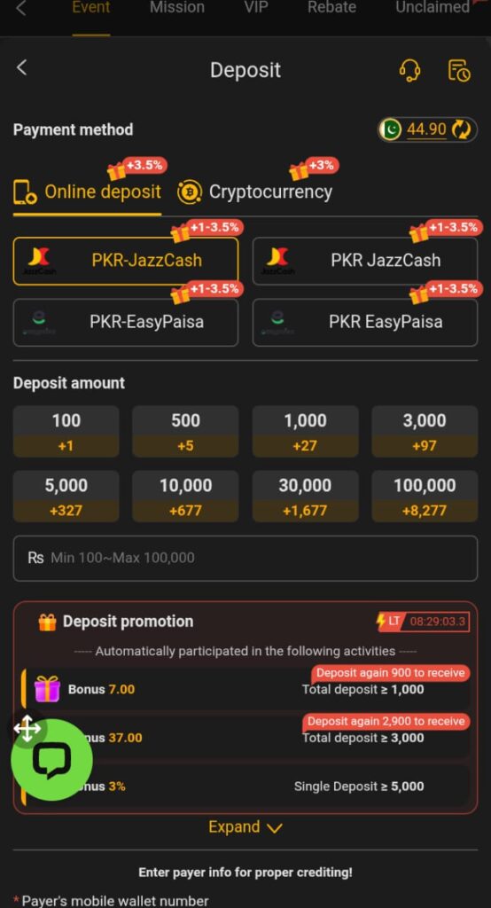 Because Pakistan widely uses JazzCash and Easypaisa, the platform’s support for these services makes deposits and withdrawals incredibly convenient.