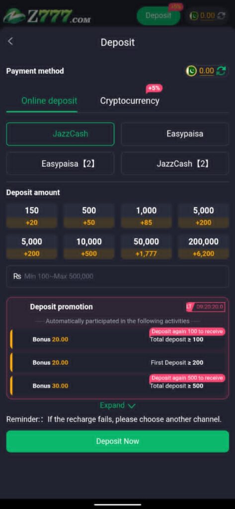 Z 777 Game provides convenient deposit and withdrawal processes to help players manage their accounts smoothly. While the exact methods may vary by region, the general process remains similar across devices.